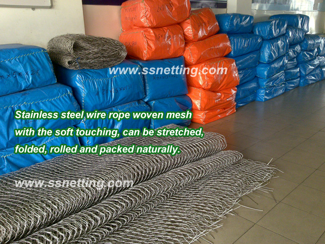 The stainless steel wire rope woven mesh are with the soft touching, can be stretched, folded, rolled and packed naturally