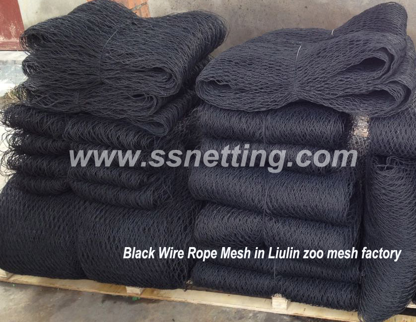 Black stainless steel cable mesh is a special process surface treatment of stainless steel rope woven mesh, used in animal cages can absorb the strong sun Light, in the hot sun to protect the animal vision is not strong light, reflected light stimulation, play a certain shade effect.