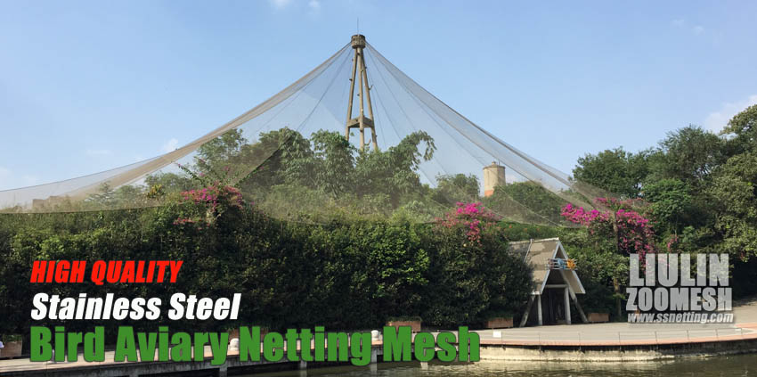 △ The above left pic are a zoo aviary mesh netting project in Chengdu zoo, China, the aviary wire fence netting are large can screen many kind of birds, and wholly place include trees, buildings, lake and other facility.