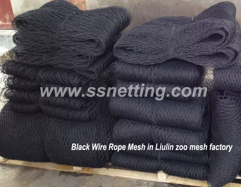 Black stainless steel cable mesh is a special process surface treatment of stainless steel cable woven mesh, made of 304/316 stainless steel. 2 colors provided : Bronze and Black oxided stainless steel cable mesh. in the original stainless steel color on the basis of the surface into a black, used in animal cages can absorb the strong sun Light, in the hot sun to protect the animal vision is not strong light, reflected light stimulation, play a certain shade effect. But also for the black oxide treatment of stainless steel rope net, the deeper play a preservative effect, combined with a unique aesthetic sense.