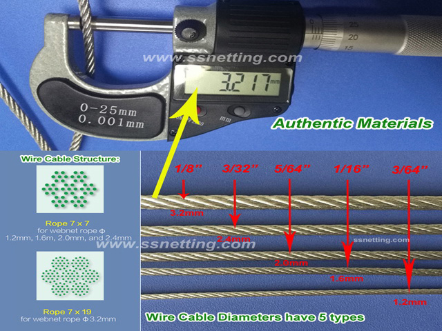 ▼ Stainless steel wire cables we uesd conforms to international standards, can be used more than 30 years with never rust and never corrosion.The wire cable diamater we used are 1.2mm, 1.6mm, 2.0mm, 2.4mm, 3.2mm, bu inch are: 3/64″, 1/16″, 5/64″, 3/62″, 1/8″.