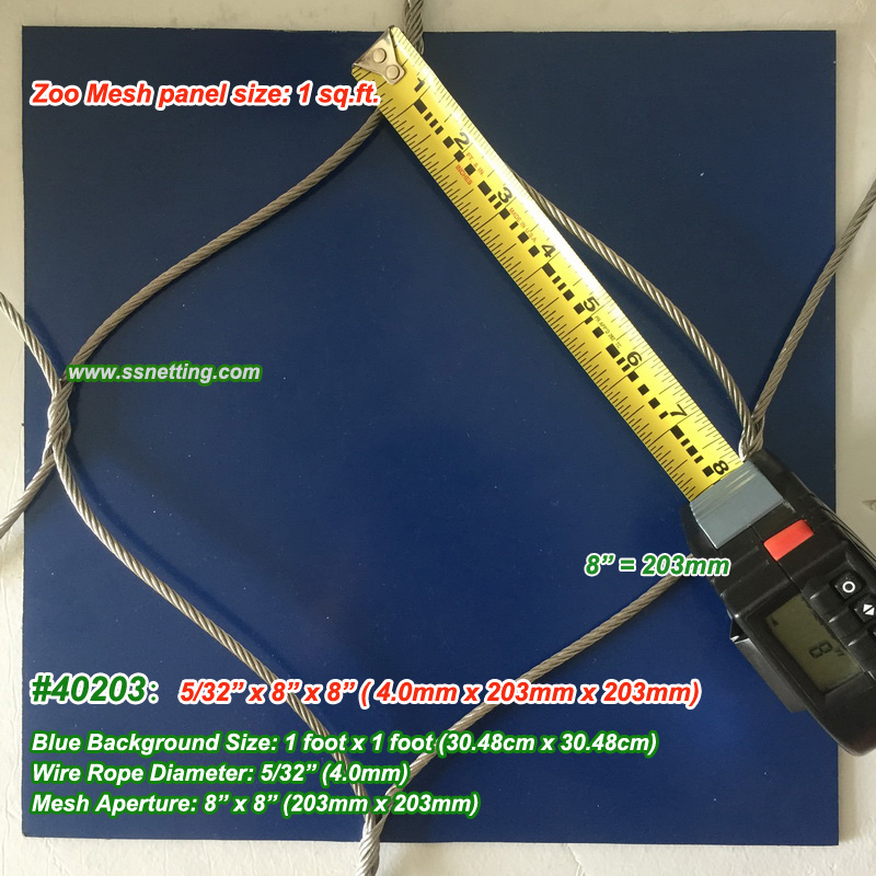 ▼The specification details about Stainless cable mesh code #40203: 5/32″, 8″ x 8″, ( 4.0mm, 203mm x 203mm):