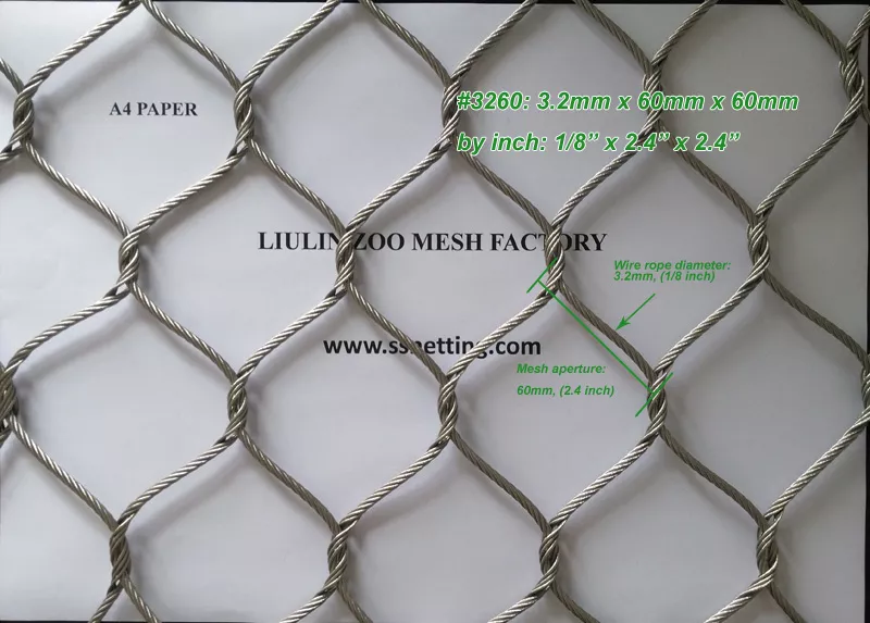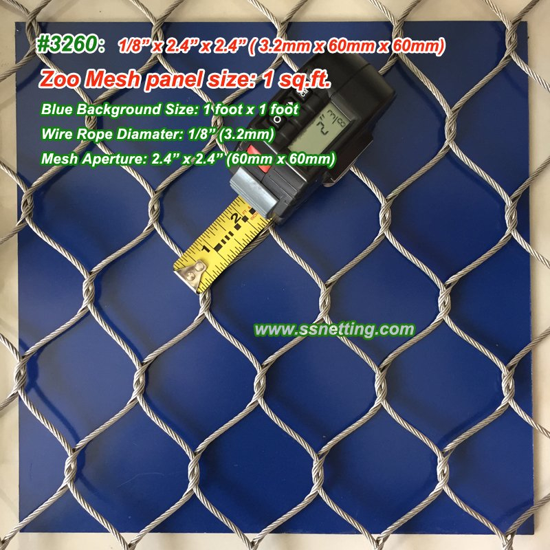 The mesh code #3260 suitable for large ferocious animal enclosure fence netting mesh, like Tiger cage enclosure mesh, Leopard cage fence, Lion cage mesh, Gorilla cage fence, Deer cage fence, and other similar animal fence netting.