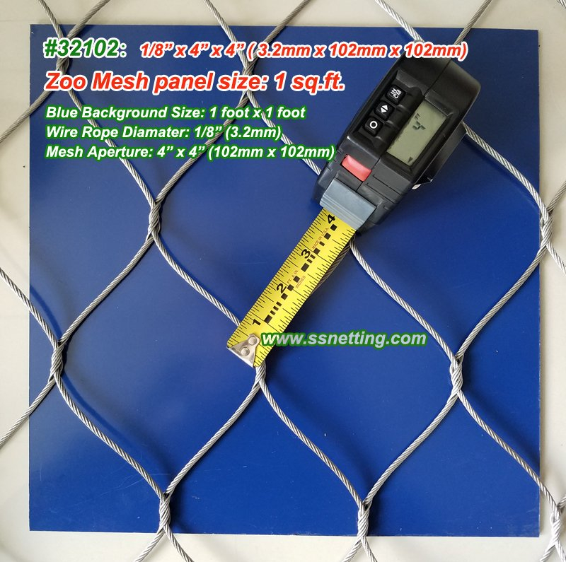 The mesh code #32102 suitable for large ferocious animal enclosure fence netting mesh, like Lion Cage Mesh, Tiger Cage Enclosure, Leopard Cage Fence, Gorilla Cage Fence, and other similar animal fence netting.