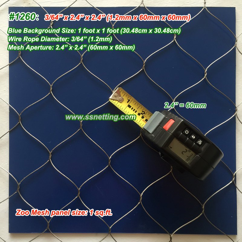 ▼The specification details about Stainless steel wire rope mesh code #1276: 3/64″, 3″ x 3″, ( 1.2mm, 76mm x 76mm):