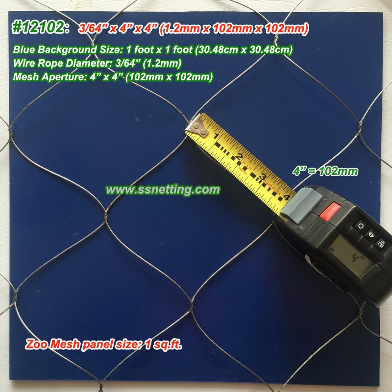 ▼The specification details about Stainless steel wire rope mesh code #12102: 3/64″, 4″ x 4″, ( 1.2mm, 102mm x 102mm):