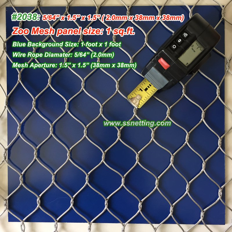 ▼ More parameter details about Stainless steel zoo mesh code #2038: 5/64″, 1.5″ x 1.5″, ( 2.0mm, 38mm x 38mm):