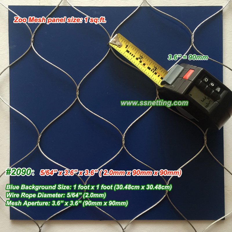 The mesh code #2090 suitable for large animal enclosure fence netting mesh, likeMonkey enclosure mesh, small cat animal cage fence enclosure netting, and other similar animal fence netting.